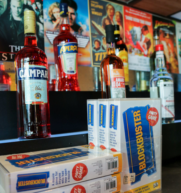 The speakeasy allows guests to come in, get their Blockbuster membership card and peruse the VHS boxes on the shelves.
